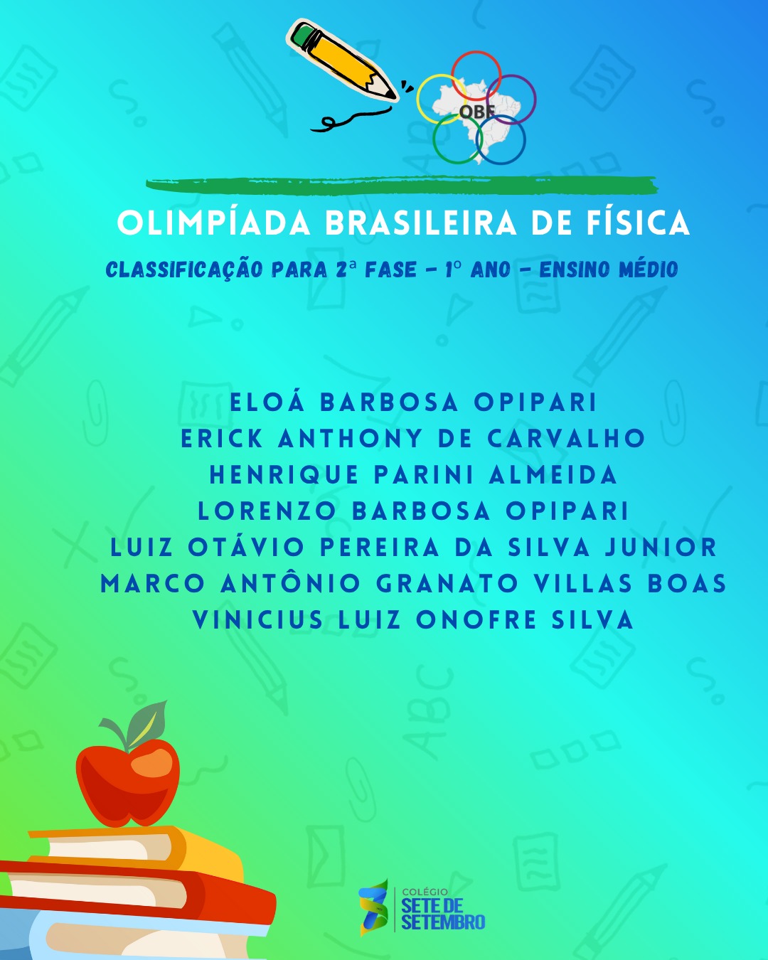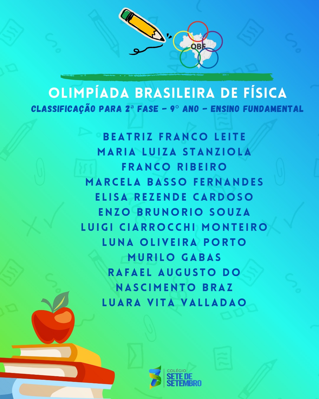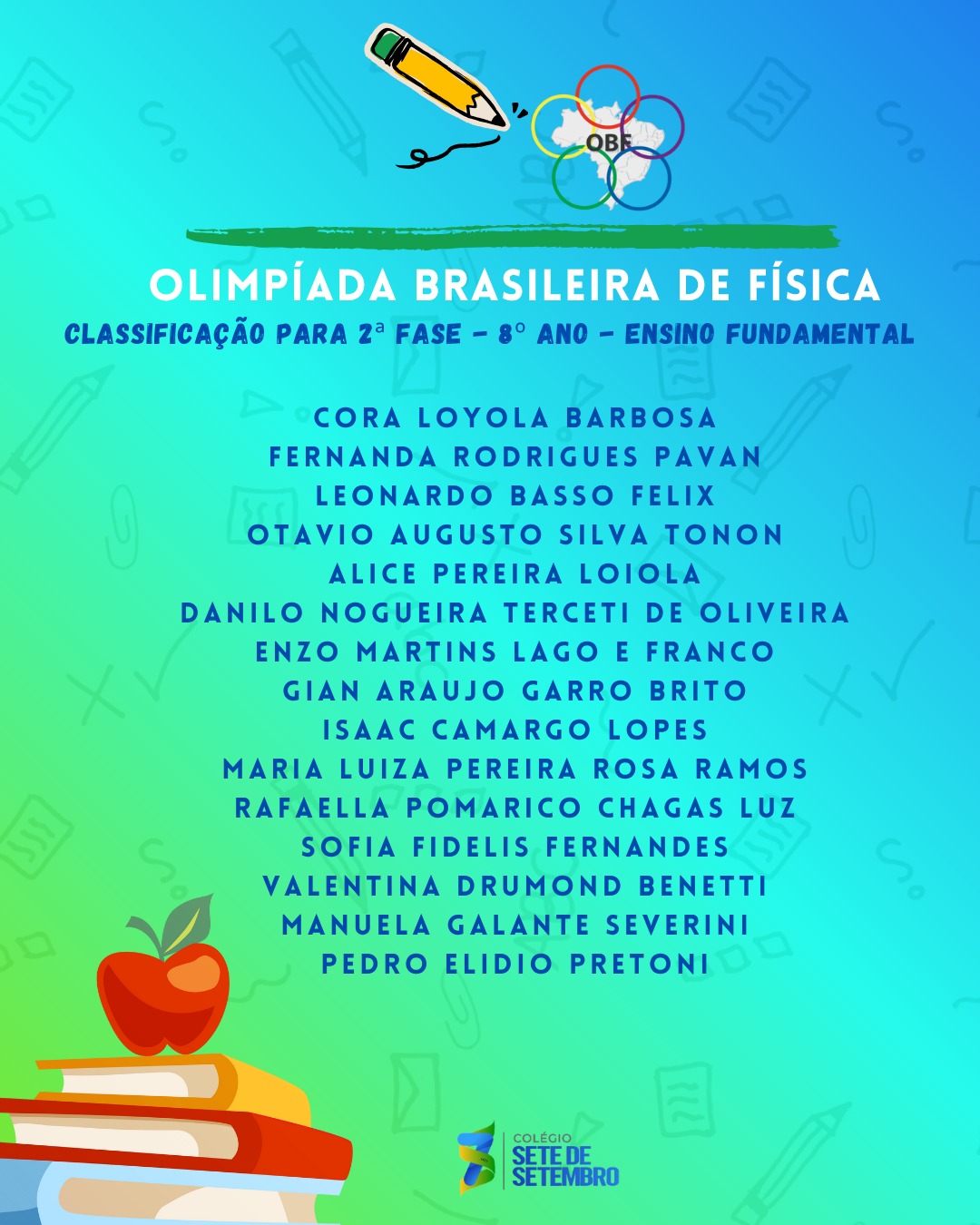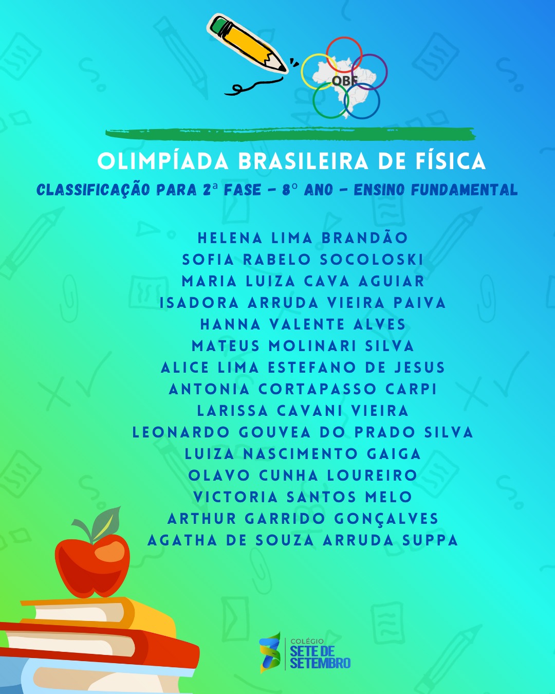 Parabenizamos nossos estudantes pela dedicação e desejamos sucesso na próxima fase.