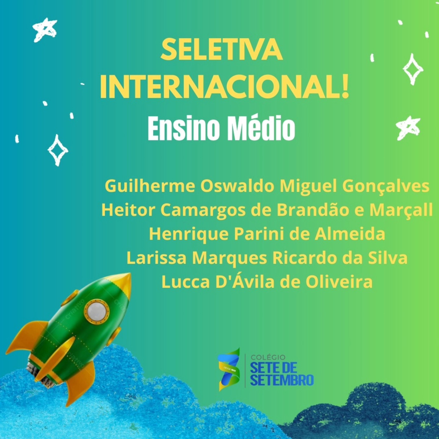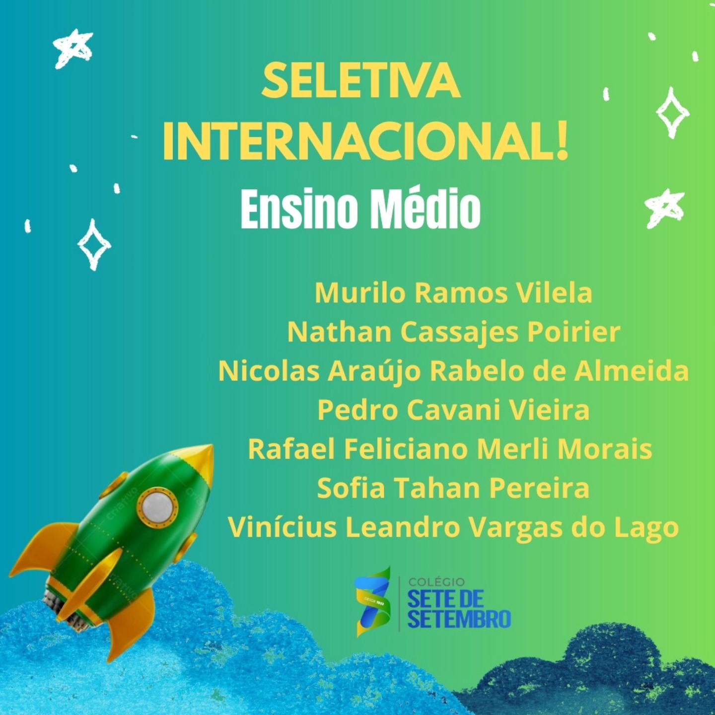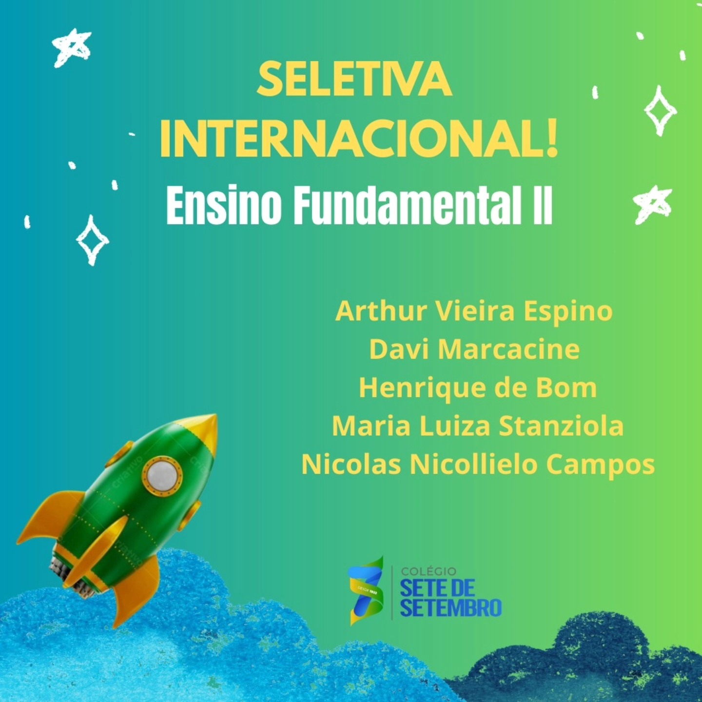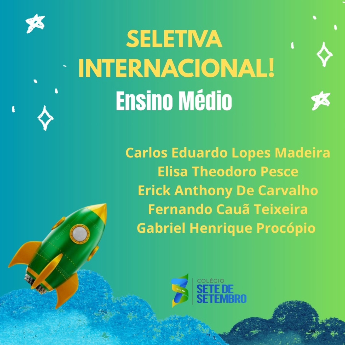 Confira os alunos que irão representar o nosso colégio.